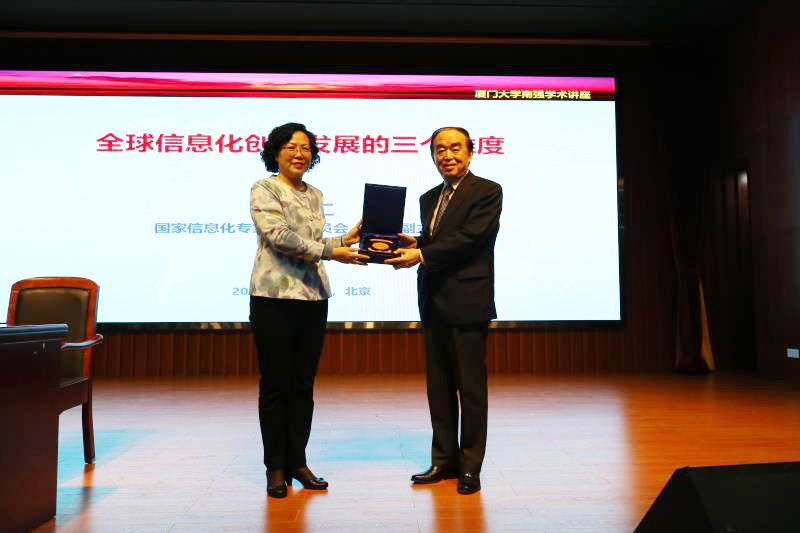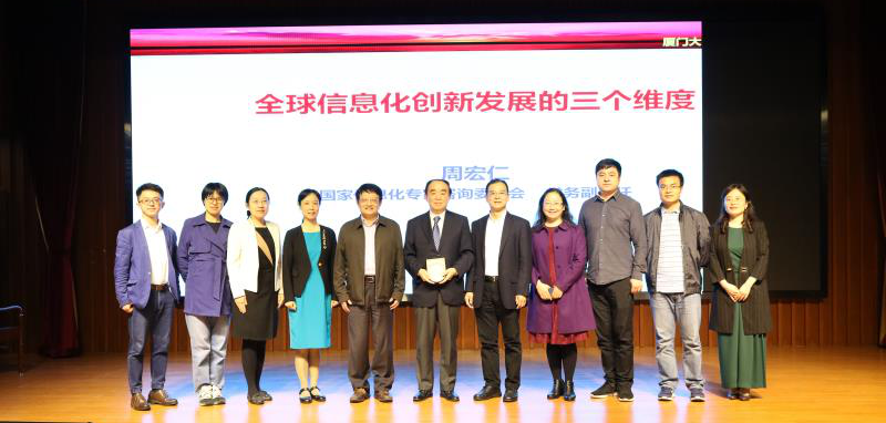 4月12日晚,国家信息化专家咨询委员会常务副主任周宏仁应邀做客第939期pc28开奖结果预测官网刮刮乐南强学术讲座,在法学院模拟法庭报告厅做了题为“全球信息化创新发展的三个维度”的精彩报告。周宏仁常务副主任于1984年获得美国明尼苏达大学电机系控制科学博士学位,是我国雷达机动多目标跟踪理论的奠基人,致力于推进我国信息化和全球信息产业发展,曾任国家计划委员会委员、经济信息管理办公室主任、国家信息中心常务副主任兼总工程师、联合国经济与社会事务部跨区域高级顾问等。
