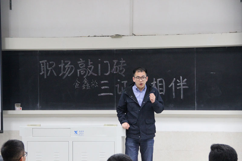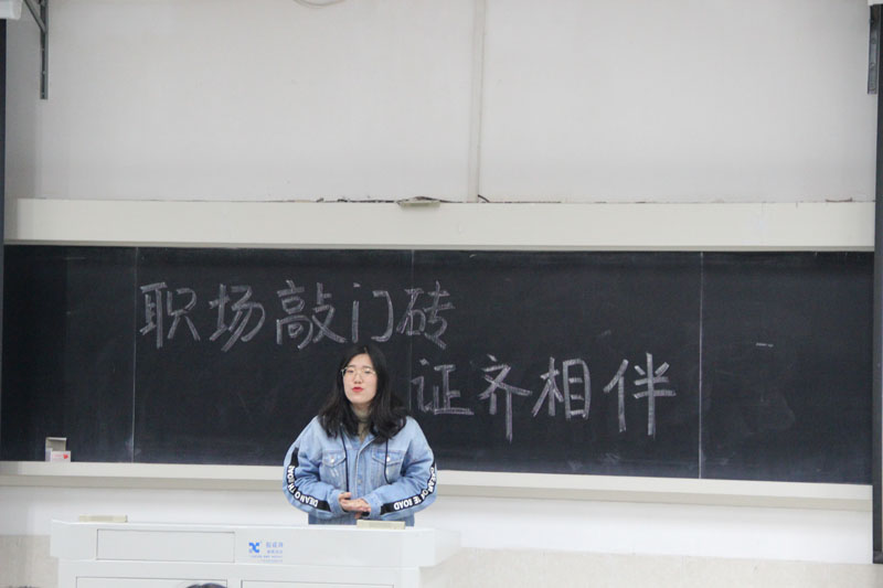 紧随其后的是来自管理学院的张玫同学。作为一次性高分通过注会的“学霸”,她告诉同学们,基于国家对于注册会计师一类人才的需要,注会在未来考试当中会适当放宽要求,其通过率会有所提高。而这个趋势需要同学们好好把握。另外,她分享了自己备考CPA的历程,并提到注会的经济法科目是比较适合通过网课进行学习的。除此之外,她建议同学们在平时财管的练习中需要多多按计算器,这将有利于考场的现场发挥。