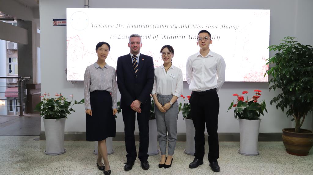 会后,Dr. Jonathan Galloway副部长、Sissie Huang女士与朱晓勤副院长、外事秘书李宏伟于法学院大厅合影留念。