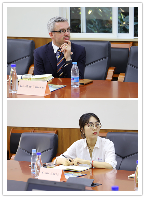 会议伊始,朱副院长对两位外宾的到来表示诚挚欢迎,进而对我院的基本情况进行了详细介绍,包括学院历史、学科建设、师资力量等方面。其间,朱副院长重点介绍了学院近年接收与派出学生的情况,已开展的国际合作项目以及国际暑期项目。Galloway副部长对此表示十分赞赏,期待与我院有类似的项目合作。