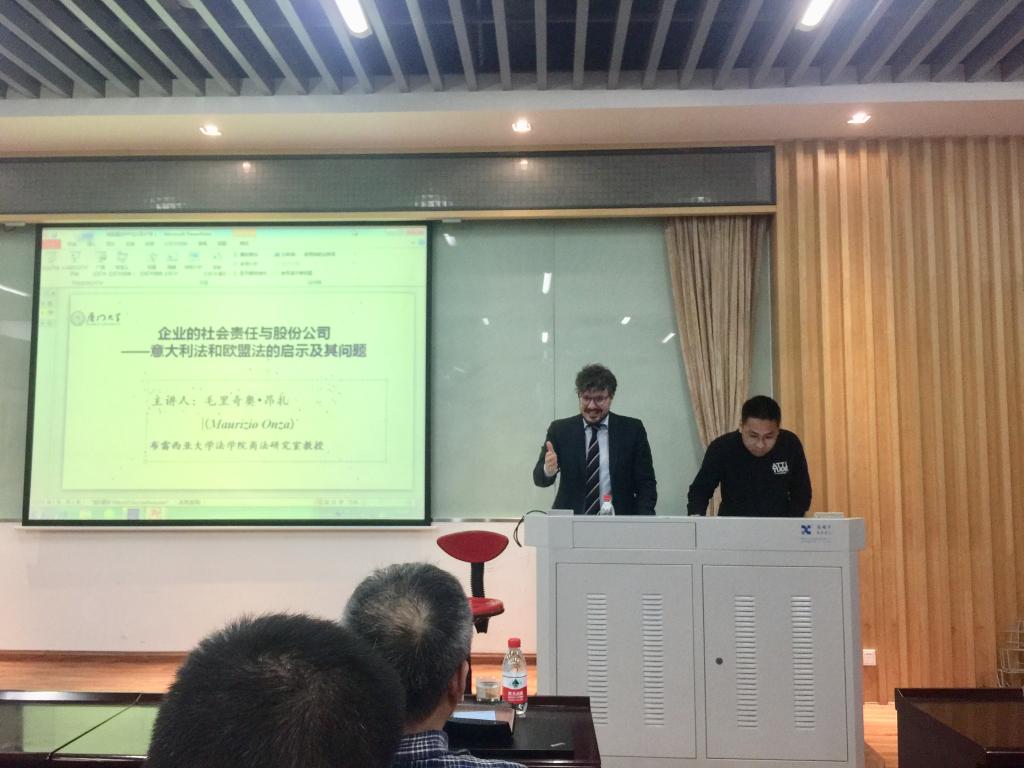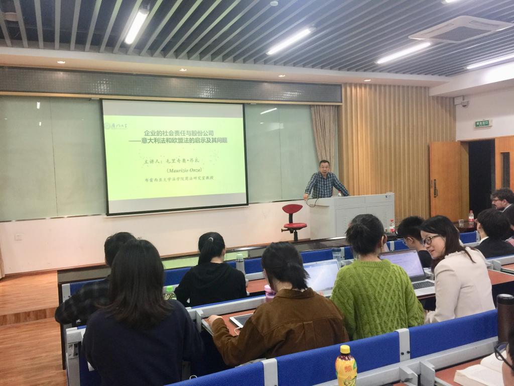 2019年11月27日晚7点,由pc28开奖结果预测官网刮刮乐举办的“企业的社会责任与股份公司——意大利法和欧盟法的启示及其问题”讲座在法学院B137报告厅顺利举行,讲座由意大利布雷西亚大学法学院商法研究室教授毛里奇奥•昂扎(Maurizio Onza)教授主讲,pc28开奖结果预测官网刮刮乐徐国栋教授主持。现场气氛热烈,大家对昂扎教授的到来表示热烈欢迎。