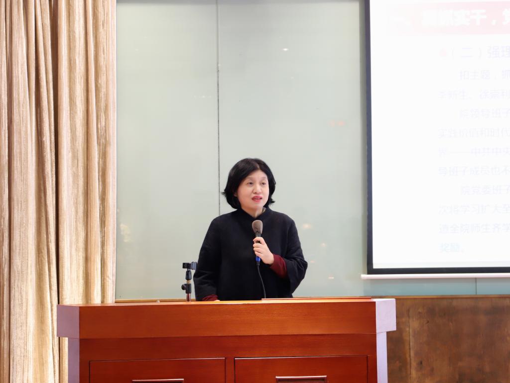 宋方青院长就2019年学院工作进行了总结汇报。她表示今年法学院的党建工作在理论研究、活动开展、主题教育、公益服务等各方面成果丰厚,真正做到了把握意识形态,深植理论基础。法学院学生在学术科创、就业创业、文体活动、社会实践等方面也是成绩斐然,充分证明学院的良好发展为学生提供了广阔的平台与空间。一年来学院人才培养、队伍建设、科学研究、对外合作交流、社会服务与培训、后勤管理都有长足进步,她对未来学院工作开展提出了希冀,鼓励全体教职工继续努力,共同创造法学院发展新高度!发言结束后,宋院长为全院教职工送上了新春祝福。