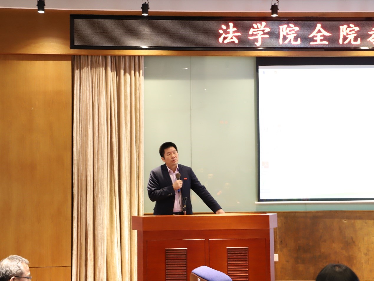 1月9日下午,法学院在B138教室召开全院教职工大会,会议由许和山书记主持,宋方青院长对2019年全年的学院工作进行了总结汇报。