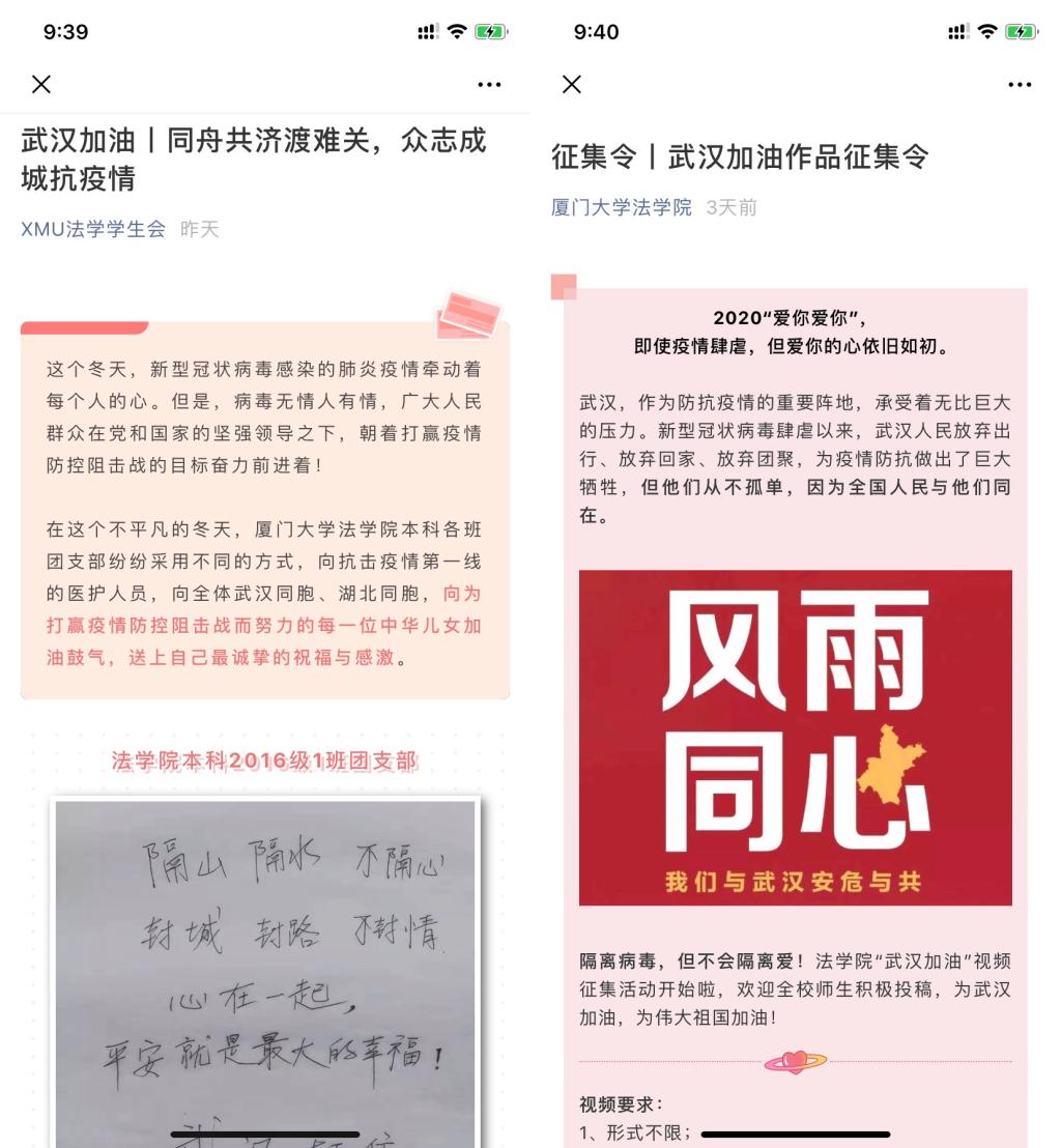 图13 法学院本科2019级2班团支部制作视频为武汉加油