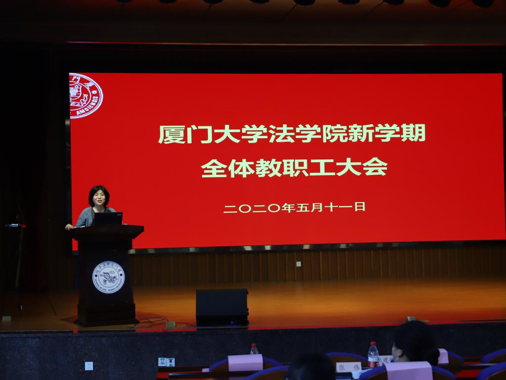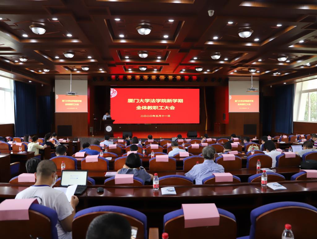 2020年5月11日下午2:30,在模拟法庭(B138会议室同步视频直播)召开全院教职工大会。大会由法学院党委书记许和山主持,学院领导班子成员、全体教职工及离退休同志代表参加了此次会议。