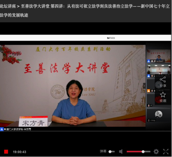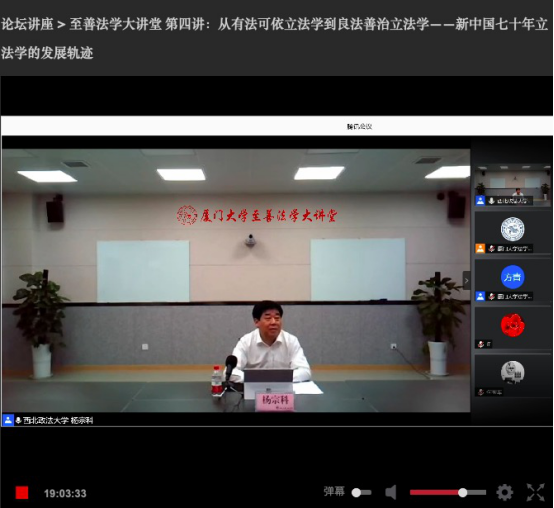 2020年6月18日晚,pc28开奖结果预测官网刮刮乐至善法学大讲堂第四讲“从有法可依立法学到良法善治立法学——新中国七十年立法学的发展轨迹”通过网络平台顺利举办,此次讲座由西北政法大学校长杨宗科教授主讲,pc28开奖结果预测官网刮刮乐院长宋方青教授主持。