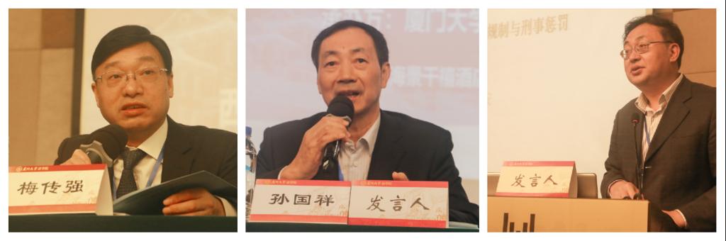 在第二单元的与谈环节中,来自浙江省金华市人民警察学校的傅跃健教授高度评价了何萍教授对《刑法修正案(十一)》(草案二审稿)提出的建议以及郭浩助理教授对于增强融资领域刑法保护性的呼吁。厦门市人民检察院第四检察部副主任、厦门市法学会刑法学研究会理事黄威检察官从实务中面临的困难出发,指出象征性立法的威慑作用不足,需要提升对洗钱犯罪打击的广度。中国人民大学法学院田宏杰教授巧妙地将刑法比作撬动中国法律体系这颗地球的“支点”,她指出在中国特色社会主义法律体系下,刑法要找准自己的位置。位置决定了功能,决定了刑法的立法驰骋的边界,决定了司法规制的疆域。她结合自己多年丰富的教学、实务双重经验,指出金融创新和金融监管不仅要尊重规则,更要敢于创造和重建规则,呼吁专家学者在拥抱世界法治文明的先进成果时,更应当要做出中国贡献。最后,来自华东政法大学刑事法学院的卢勤忠教授针对《刑法修正案(十一)》(草案)进行了总点评,他认为此次修正案符合总体国家安全观的要求,应从金融安全的角度去认识和理解。同时他认为金融犯罪领域问题比较突出,必须加强金融监管,随后阐释了自己对宽严相济的刑事政策的理解,并系统性地从重要条文入手对修正案进行了解剖,提出应该对某些犯罪进行进一步的改良。他认为要加强修正案的体系性,注重条文之间的协调性、整体性,尊重刑法的基本原则。