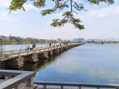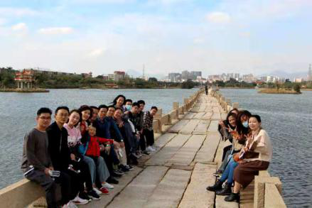 师生们漫步而行,穿过略显狭窄的桥亭,迎着阵阵微风,感受着这近千年的历史,仿佛回到了历史上泉州被称作国际大港的时代。脚底下搭建安平桥的一块块白色石板泛着黄色,这是对长时间风吹雨打的见证。师生们不光观赏着波光粼粼的水景和一览无际的风光,同时体会到安平桥上所凝结的劳动人民的智慧。