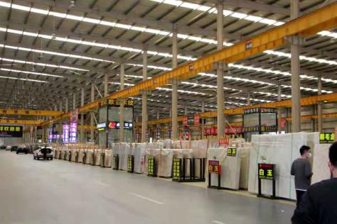 师生步入泉州恒隆建材广场的仓库,映入金融法中心师生眼帘的是一望无际却排列整齐的石板材,每一种石板材因其自身独特的颜色、纹路和材质而被赋予了不同的名字,“鱼肚白”、“古青玉”等略带诗意的名称也让人在听到的一瞬间就能体会到每一种石板材的特色。