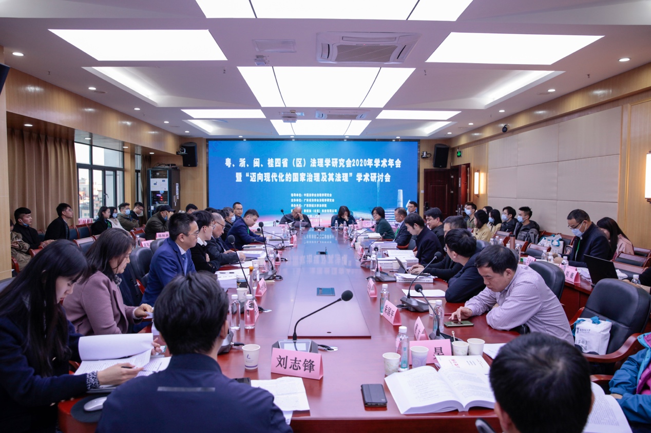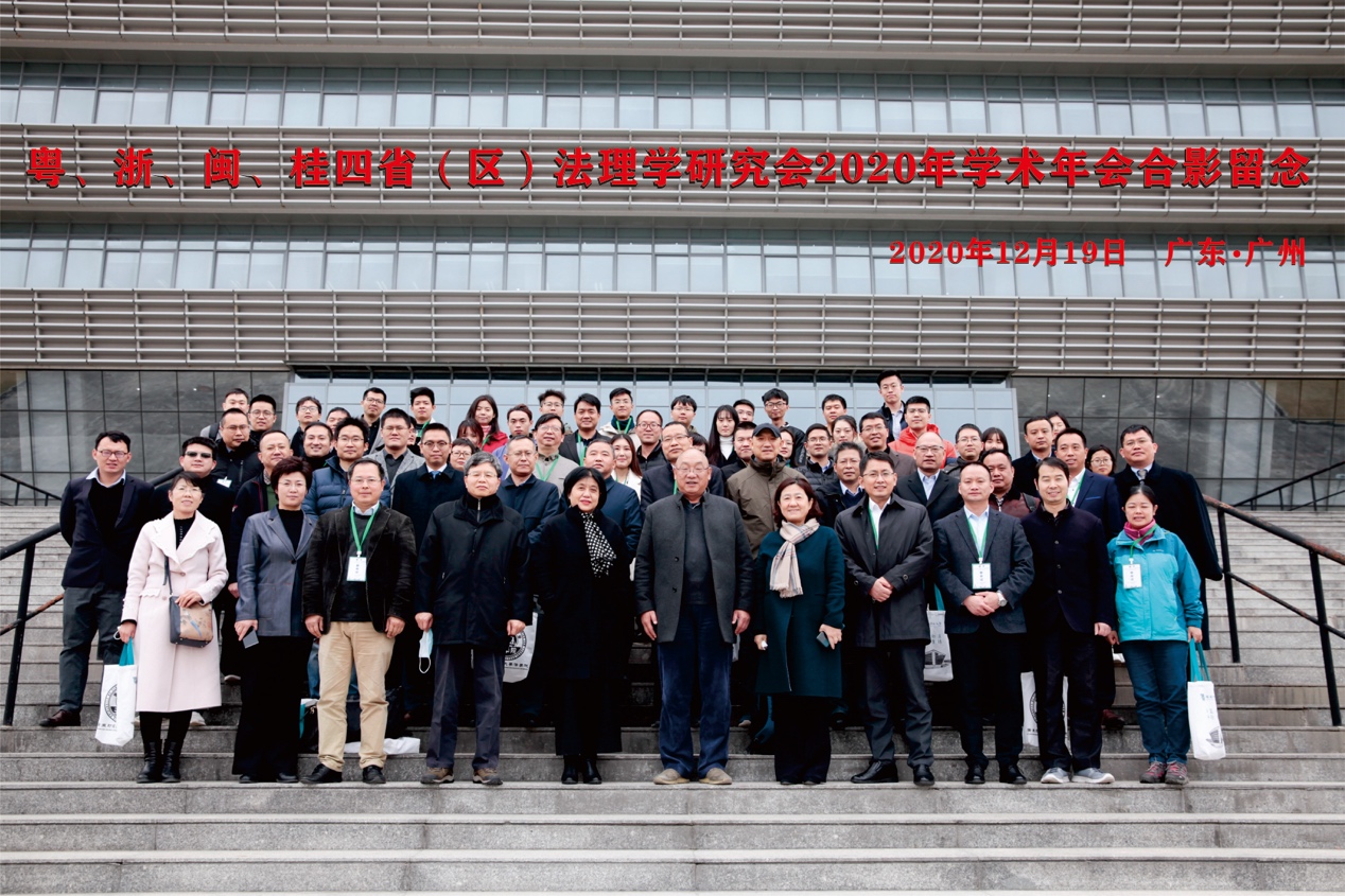 2020年12月19日,由广东省法学会法理学研究会主办、广东财经大学法学院承办的粤、浙、闽、桂四省(区)法理学研究会2020年学术年会暨“迈向现代化的国家治理及其法理”学术研讨会在广州顺利举行。来自四省高校以及科研机构的100多名法理学专家学者、法律实务工作者和法理学研究生参会。我院院长宋方青教授、副院长郭春镇教授、郑金雄教授、姜孝贤助理教授、程庆栋助理教授与我院法学理论硕博士共赴广州参加此次学术盛会。