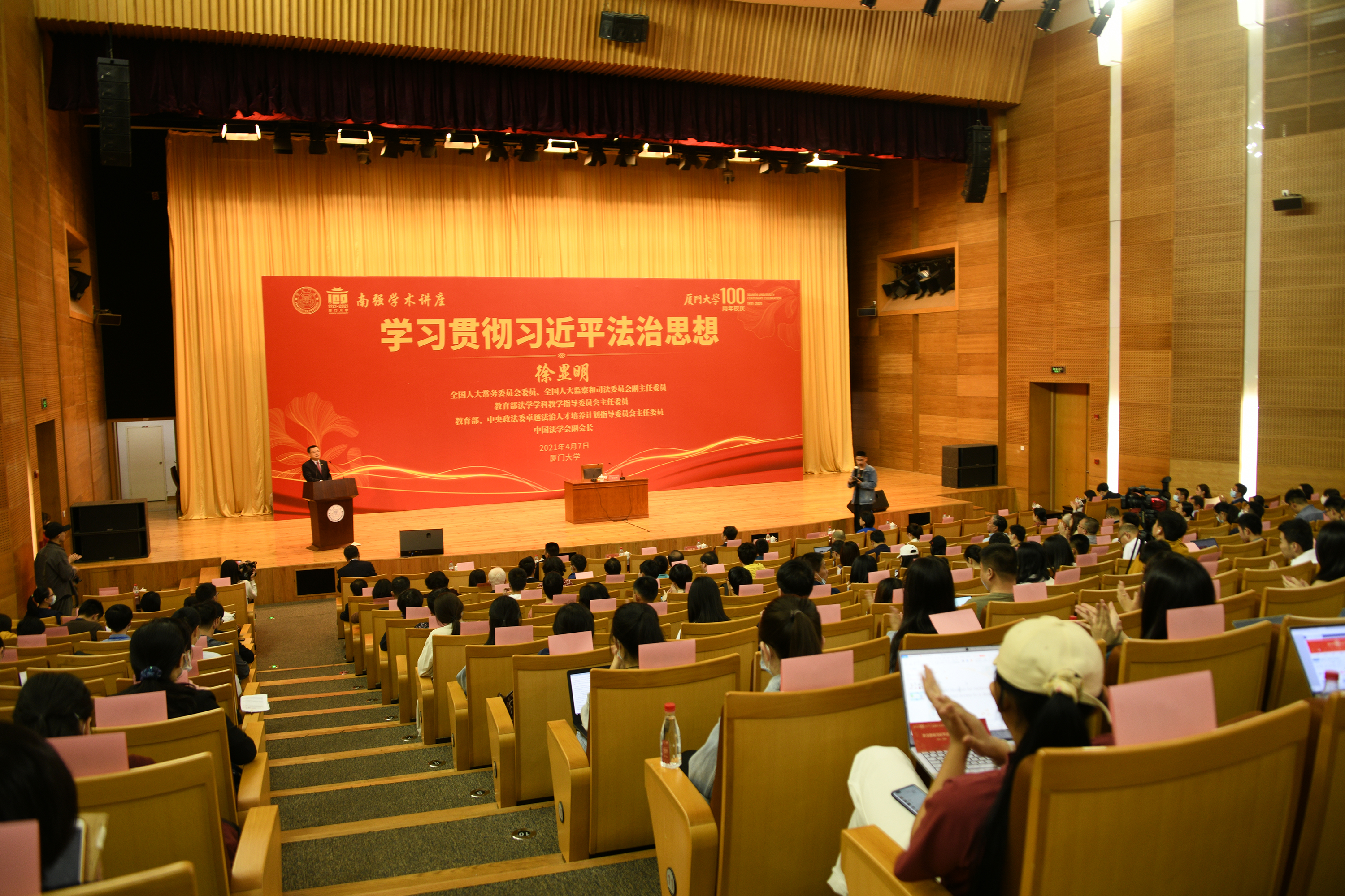 4月7日下午,“南强学术讲座”在科学艺术中心报告厅举行。徐显明教授应邀为师生作题为“学习贯彻习近平法治思想”的专题讲座。校长张荣致辞,校党委副书记、纪委书记全海主持。