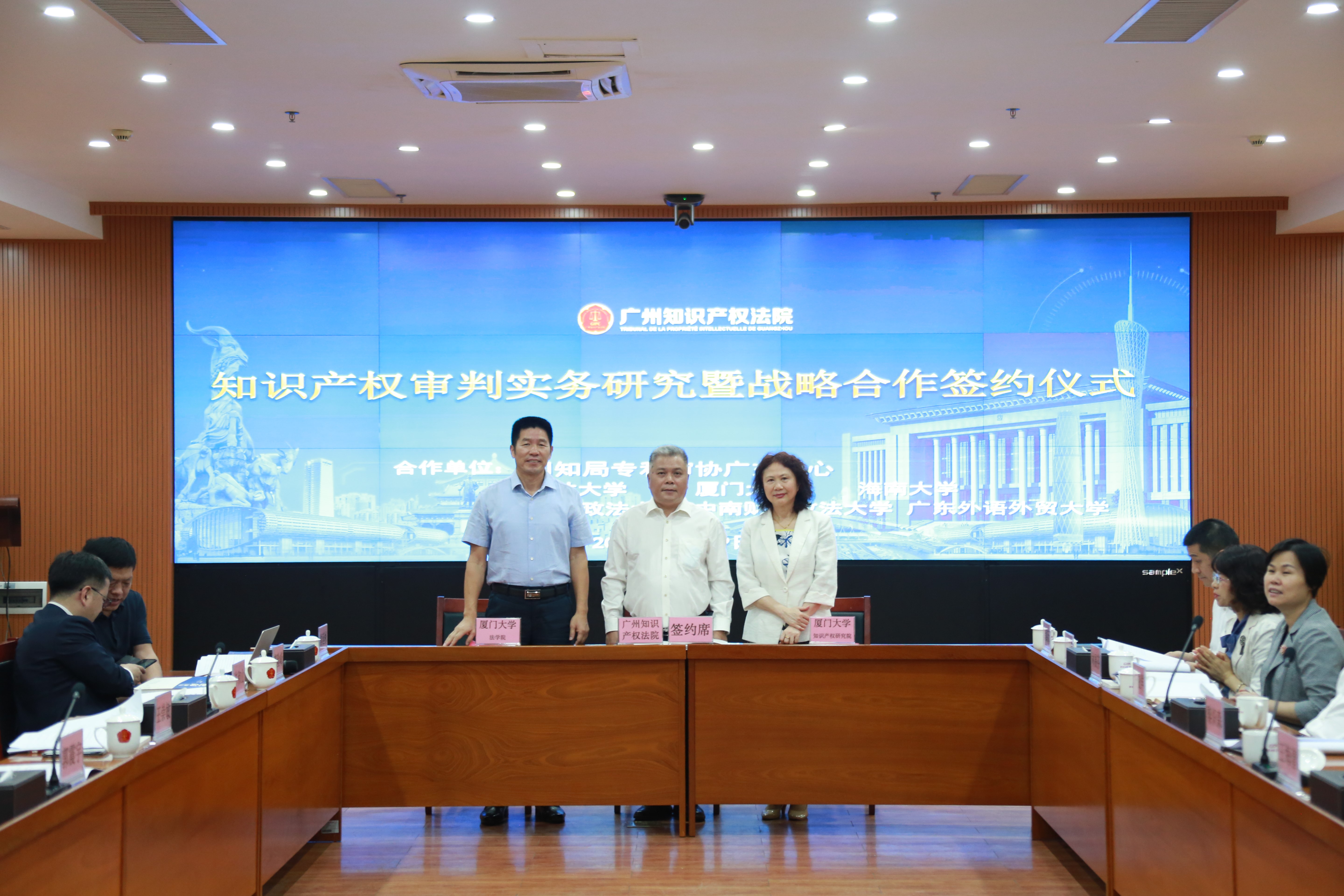 此次签约面向广州知识产权法院的第二批签约高校,同时签约的兄弟院校还有吉林大学、西南政法大学、中南财经政法大学、海南大学、广东外语外贸大学五家高校,标志着法学院、知识产权研究院在院校合作工作方面再上新台阶。