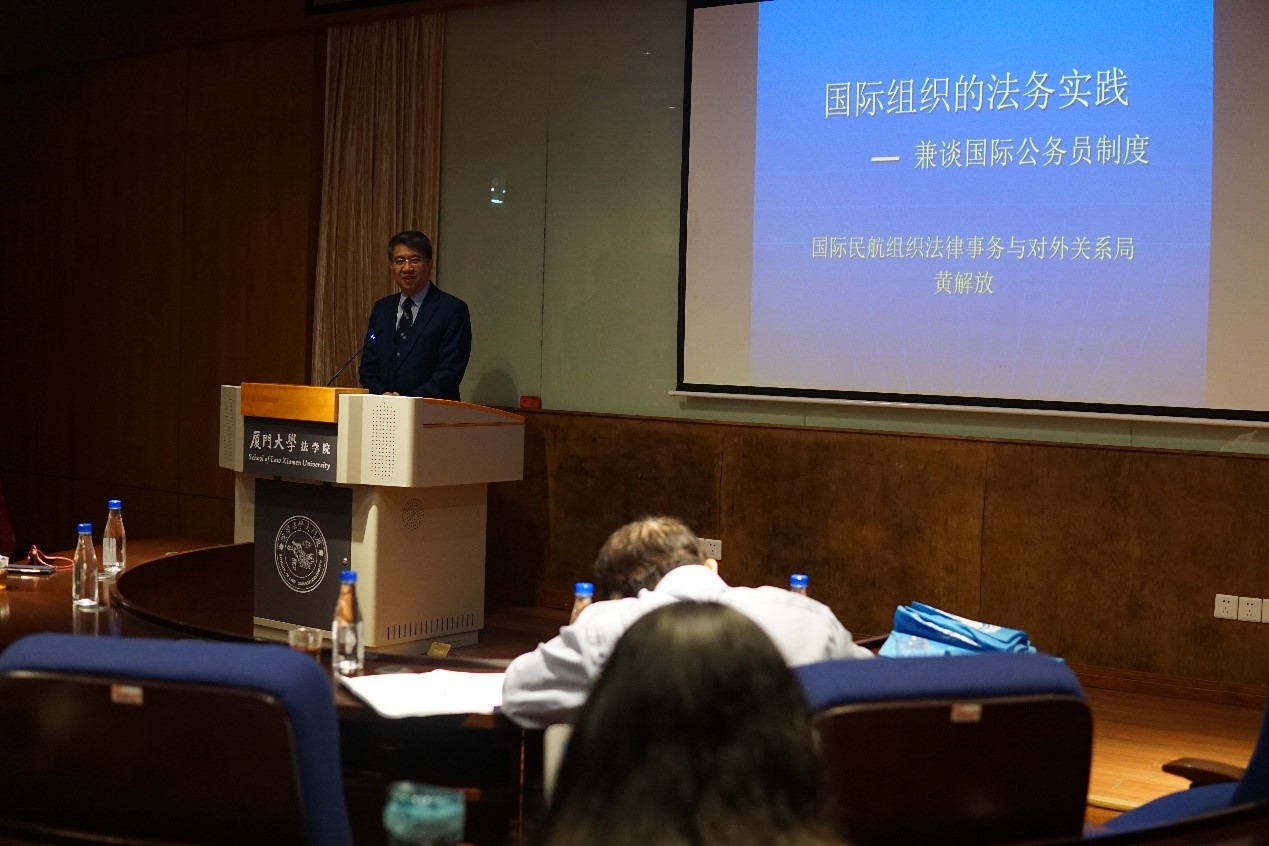 《国际组织的法务实践——兼谈国际公务员制度》作为“pc28开奖结果预测官网刮刮乐国际法前沿论坛”学术讲座,于2021年4月27日晚在pc28开奖结果预测官网刮刮乐B138成功举办,以献礼pc28开奖结果预测官网刮刮乐百年校庆。国际民用航空组织法律事务与对外关系局黄解放局长的精彩报告传递了理想、信念、知识和智慧,使pc28开奖结果预测官网刮刮乐师生受益良多。