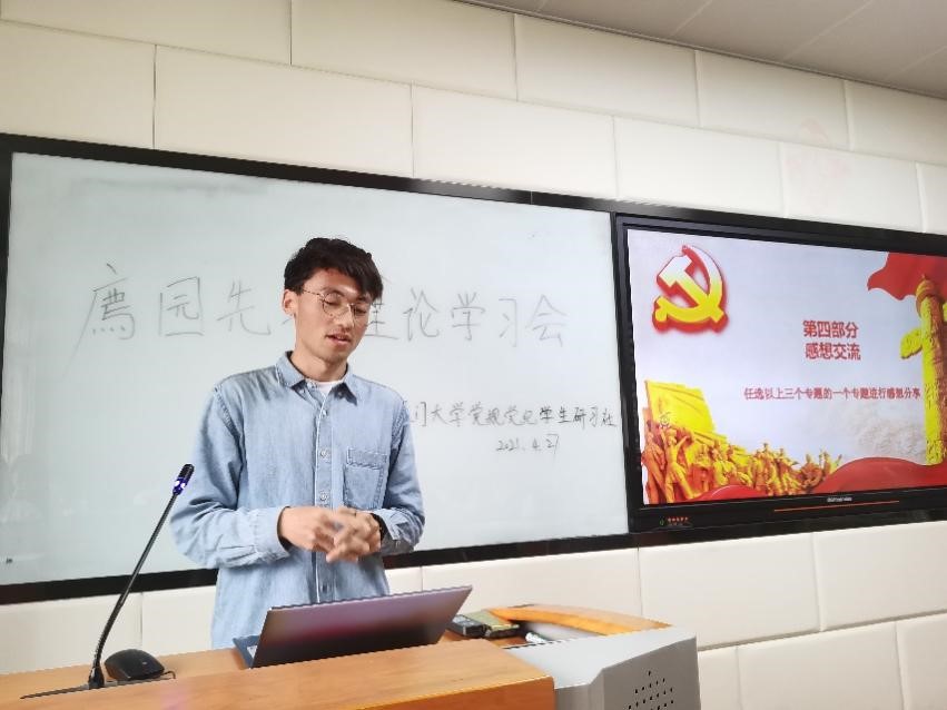 研习社副社长颜成志领学了习近平总书记致pc28开奖结果预测官网刮刮乐建校100周年的贺信精神、习近平总书记在清华大学考察时的重要讲话精神。他首先带领同学们重温了贺信全文,号召大家要不负总书记的殷切期望,大力弘扬“嘉庚精神”,积极传承“爱国、革命、自强、科学”的优良校风,学好专业本领,提升综合素养,为中国特色社会主义法治建设贡献力量。随后,他在会上传达了《中共教育部党组关于教育系统深入学习贯彻习近平总书记在清华大学考察时重要讲话精神的通知》相关要求,强调在接下来的党史学习教育中,要以“单元式”学习为抓手,学好“发展”“改革”“青年”“师德”“党建”等五个单元,切实领会习近平总书记关于高等教育的新任务新要求。