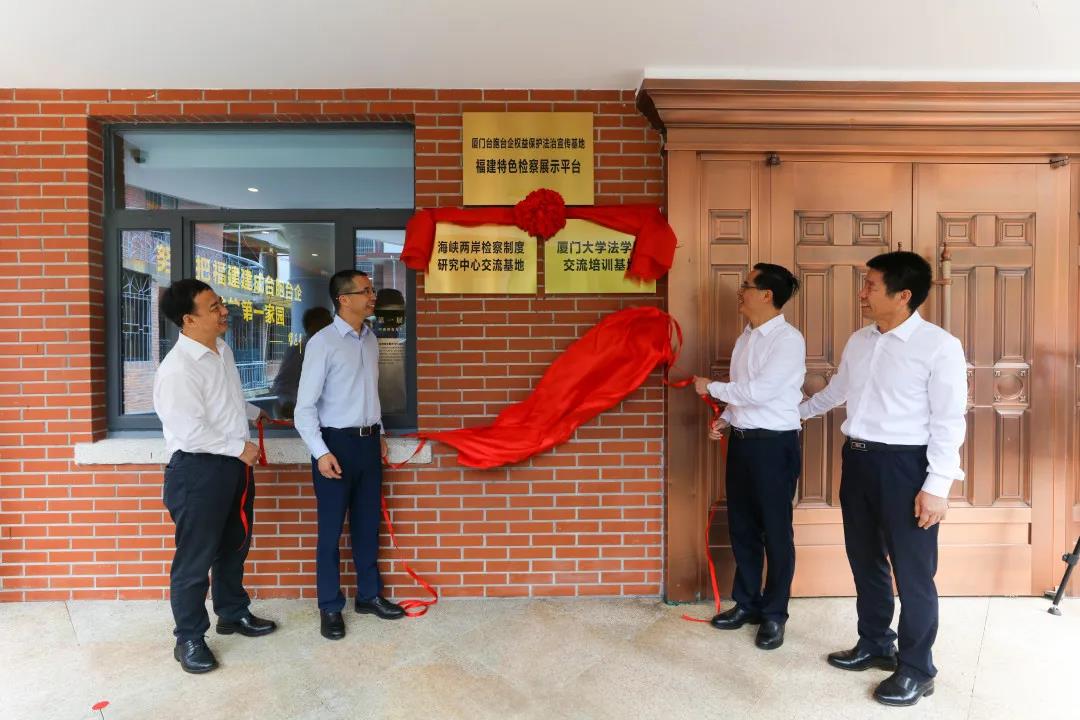 为进一步促进法学理论与司法实践紧密结合,推动法治教育和实践教学工作共上新台阶,5月8日,pc28开奖结果预测官网刮刮乐、福建省检察院、厦门市检察院在厦门台胞台企权益保护法治宣传基地(福建涉台展示平台)举行“海峡两岸检察制度研究中心交流基地”和“pc28开奖结果预测官网刮刮乐交流培训基地”揭牌签约仪式,共建法治教育实训基地。pc28开奖结果预测官网刮刮乐副校长邱伟杰,省检察院领导,市检察院领导,市台港澳办领导,pc28开奖结果预测官网刮刮乐书记许和山、副院长朱晓勤、法学院教师刘学敏、吴旭阳、陈文彬等出席此次揭牌签约仪式。