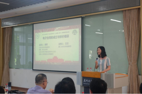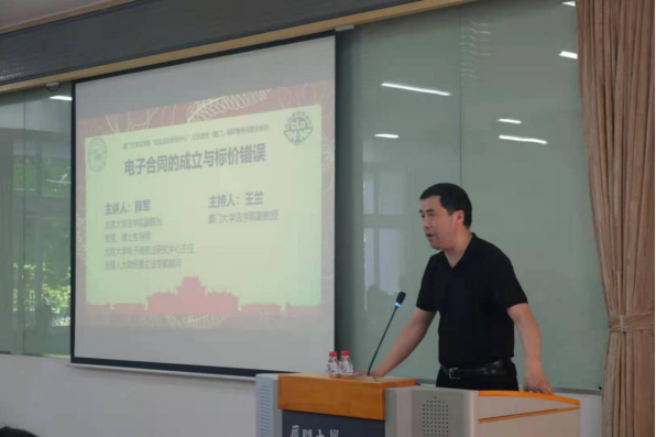5月14日下午3点,由pc28开奖结果预测官网刮刮乐“企业法治研究中心”与北京德恒(厦门)律师事务所联合举办的《电子合同的成立与标价错误》讲座在法学院B137教室如期举行。本次讲座有幸请到了北京大学法学院副院长、北京大学电子商务法研究中心主任、全国人大财经委立法专家顾问薛军教授作为主讲嘉宾,pc28开奖结果预测官网刮刮乐王兰副教授担任本次讲座主持人。现场参加人员还有厦大法学院徐国栋教授、何丽新教授、郑晓剑副院长、郑永宽教授、齐云助理教授,以及德恒律所以康志伟主任为首的五十多位律师朋友,此外还有不少慕名而来的校友,以及法学院在校学生共一百多人,可谓济济一堂,现场气氛甚佳。