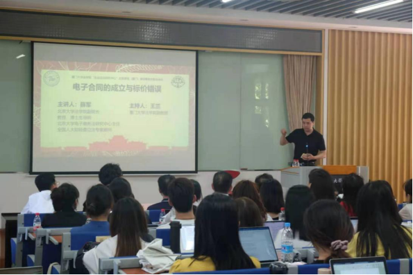 薛军教授语言生动诙谐、深入浅出,从宏观与微观、理论与实践层面提出了对电子合同成立及其标价错误处理与救济的理解,为大家带了一场学术盛宴,在场听众受益匪浅。之后,徐国栋教授对此次讲座做了简短的点评,在座的律师朋友和在校的学生也提出相关问题与薛教授互动。最后,部分与会人员与薛军教授合影留念。本次讲座圆满结束。