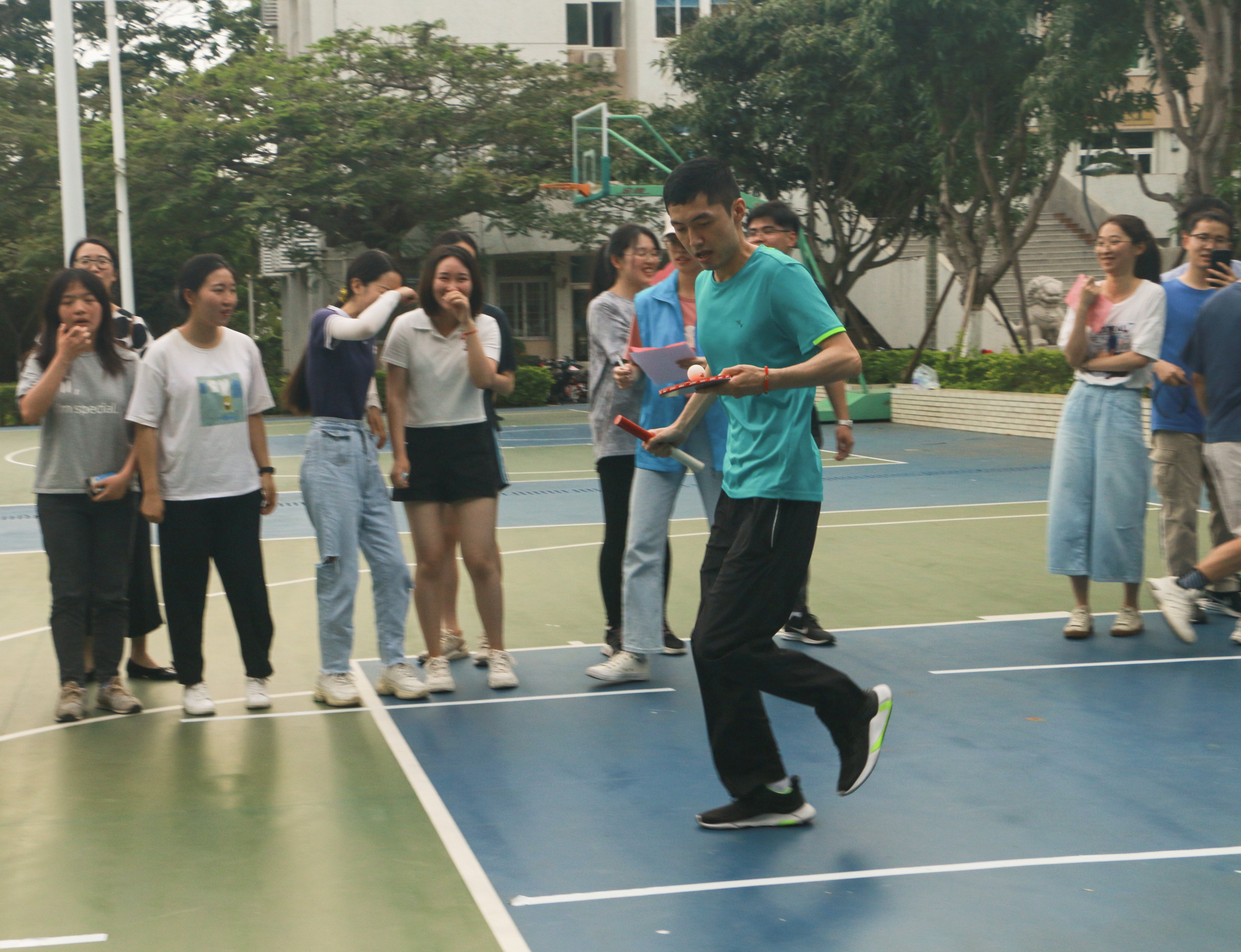 为推动法学院研究生导学关系的健康发展、丰富研究生与导师的交流方式,构建教学相长、师生相宜、团队共建的导学关系,5月13日下午,“风华正茂,百年征程”——第六届“师门大战”师生趣味运动会在pc28开奖结果预测官网刮刮乐海滨篮球场举行。研究生辅导员宋磊华到场为参赛的老师、同学们加油助威。
