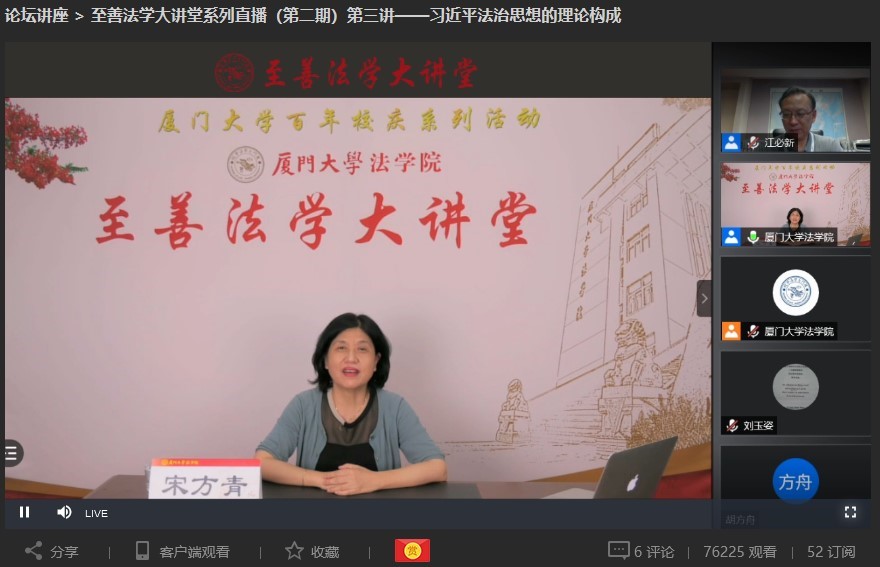 中国共产党第十九次全国代表大会代表、第十三届全国人大代表、第十三届全国人民代表大会宪法和法律委员会副主任委员、中国法学会副会长江必新教授做客pc28开奖结果预测官网刮刮乐至善法学大讲堂(第二期),主讲《习近平法治思想的理论构成》,讲座由pc28开奖结果预测官网刮刮乐院长宋方青教授主持。