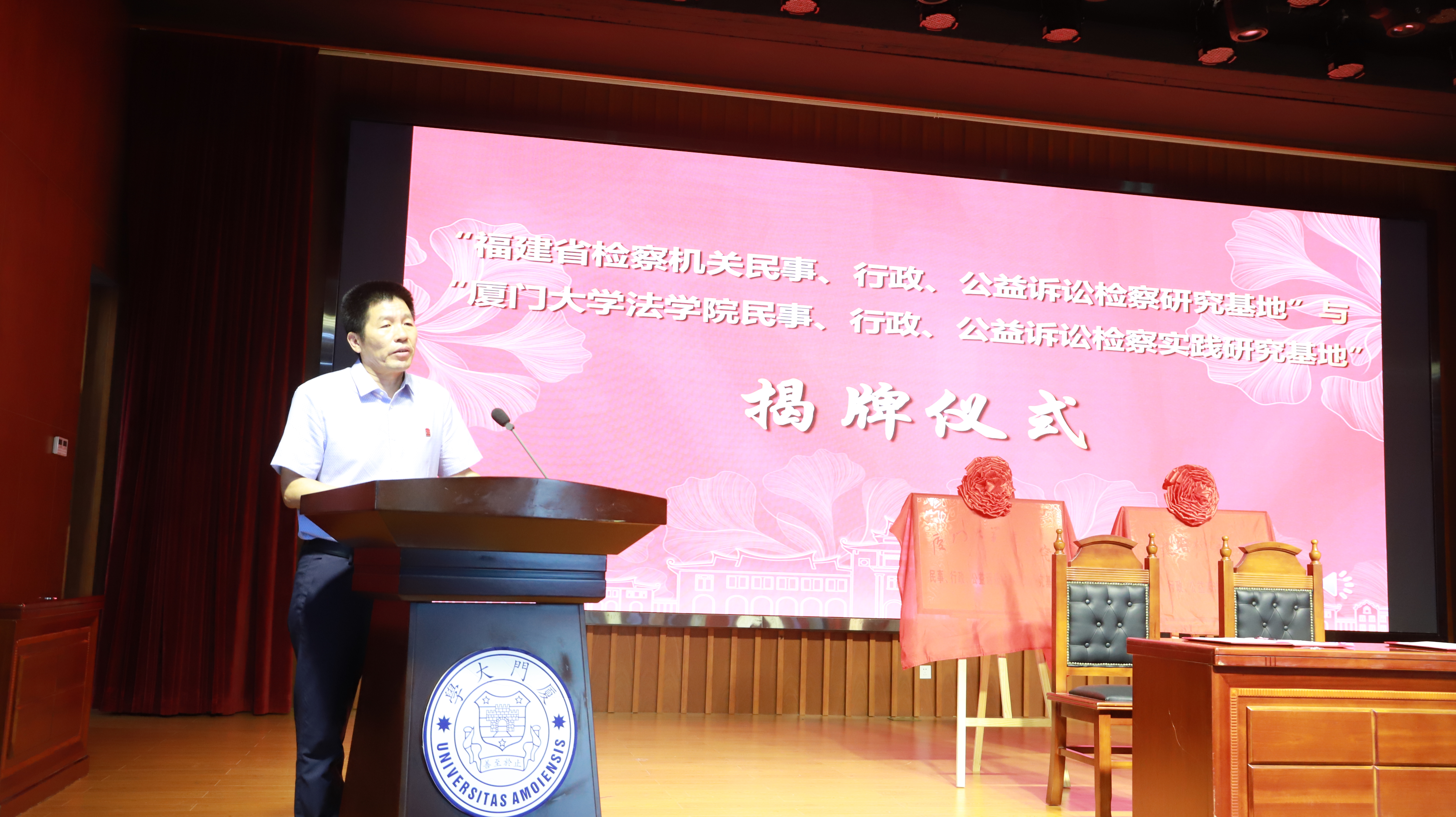 揭牌仪式举行,洪清副检察长与邱伟杰副校长分别为“福建省检察机关民事、行政、公益诉讼检察研究基地”和“pc28开奖结果预测官网刮刮乐民事、行政、公益诉讼检察实践研究基地”揭牌。
