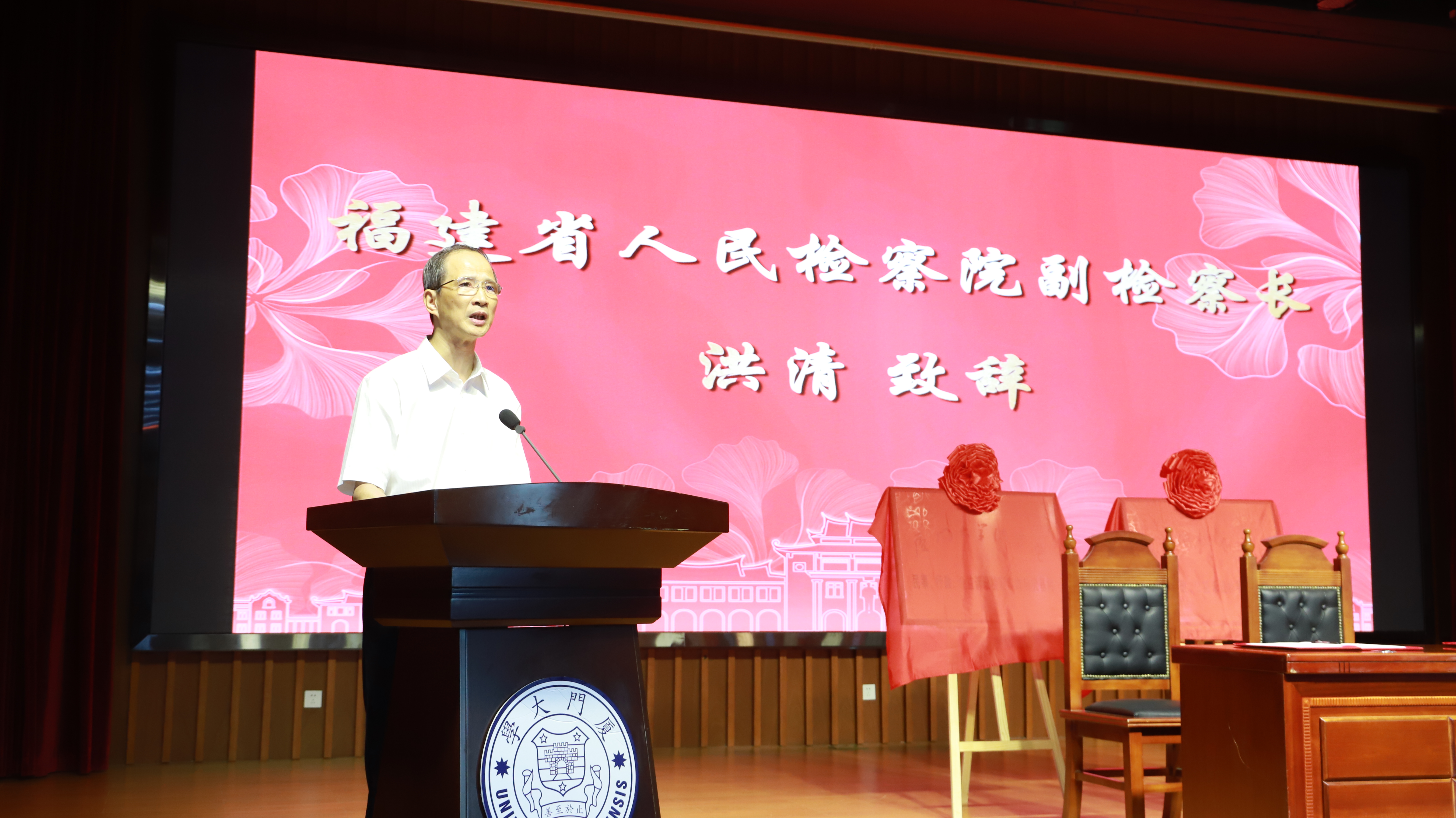 6月10日上午,“福建省检察机关民事、行政、公益诉讼检察研究基地”与“pc28开奖结果预测官网刮刮乐民事、行政、公益诉讼检察实践研究基地”揭牌仪式在pc28开奖结果预测官网刮刮乐模拟法庭成功举行。福建省人民检察院洪清副检察长、泉州市人民检察院党组书记、检察长傅建飞、副检察长樊美清等省市检察机关领导出席仪式。pc28开奖结果预测官网刮刮乐副校长邱伟杰、法学院院长宋方青、副院长朱晓勤及部分师生出席。仪式由法学院党委书记许和山主持。