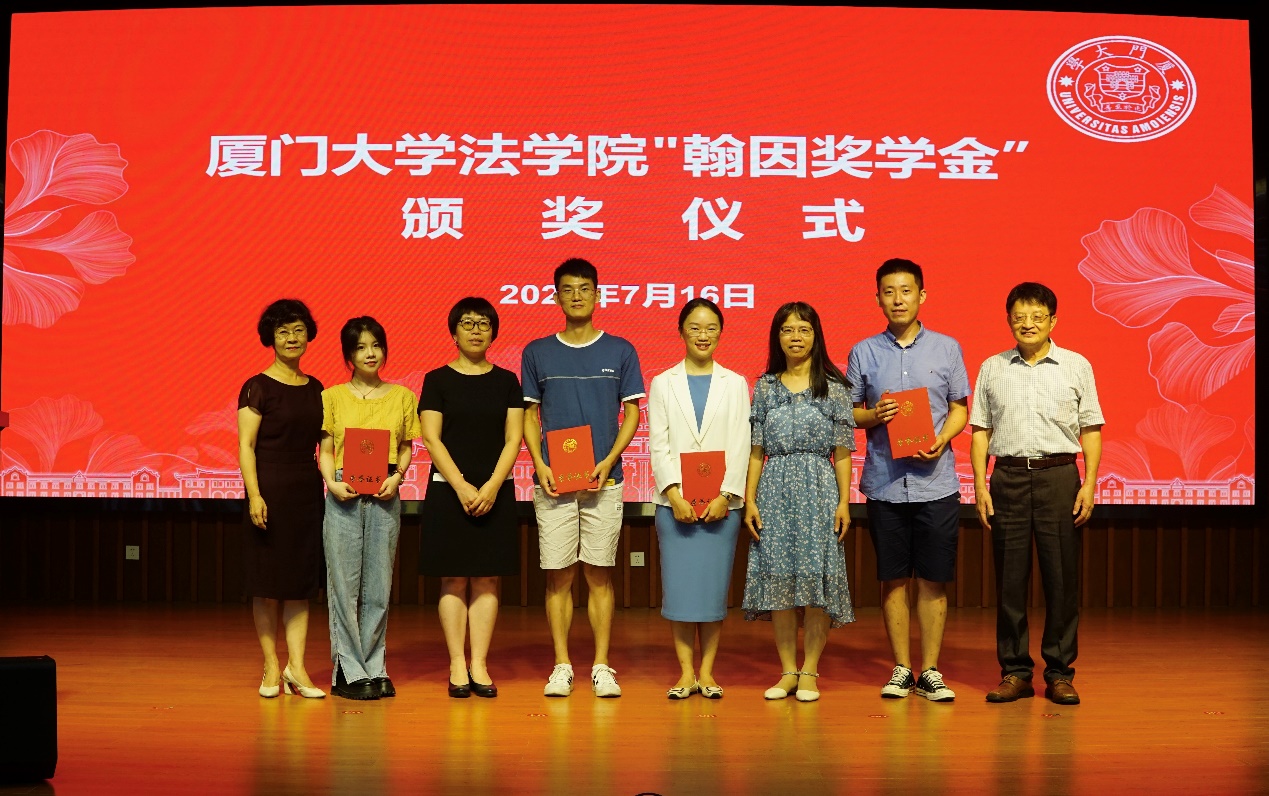 7月16日下午,2021年度pc28开奖结果预测官网刮刮乐“翰因奖学金”颁奖仪式在模拟法庭隆重举行。中国国际经济法学会会长、pc28开奖结果预测官网刮刮乐陈安国际法学发展基金会理事长曾华群教授,国际法教研室于飞教授、陈辉萍教授、韩秀丽教授以及部分师生代表出席颁奖仪式。