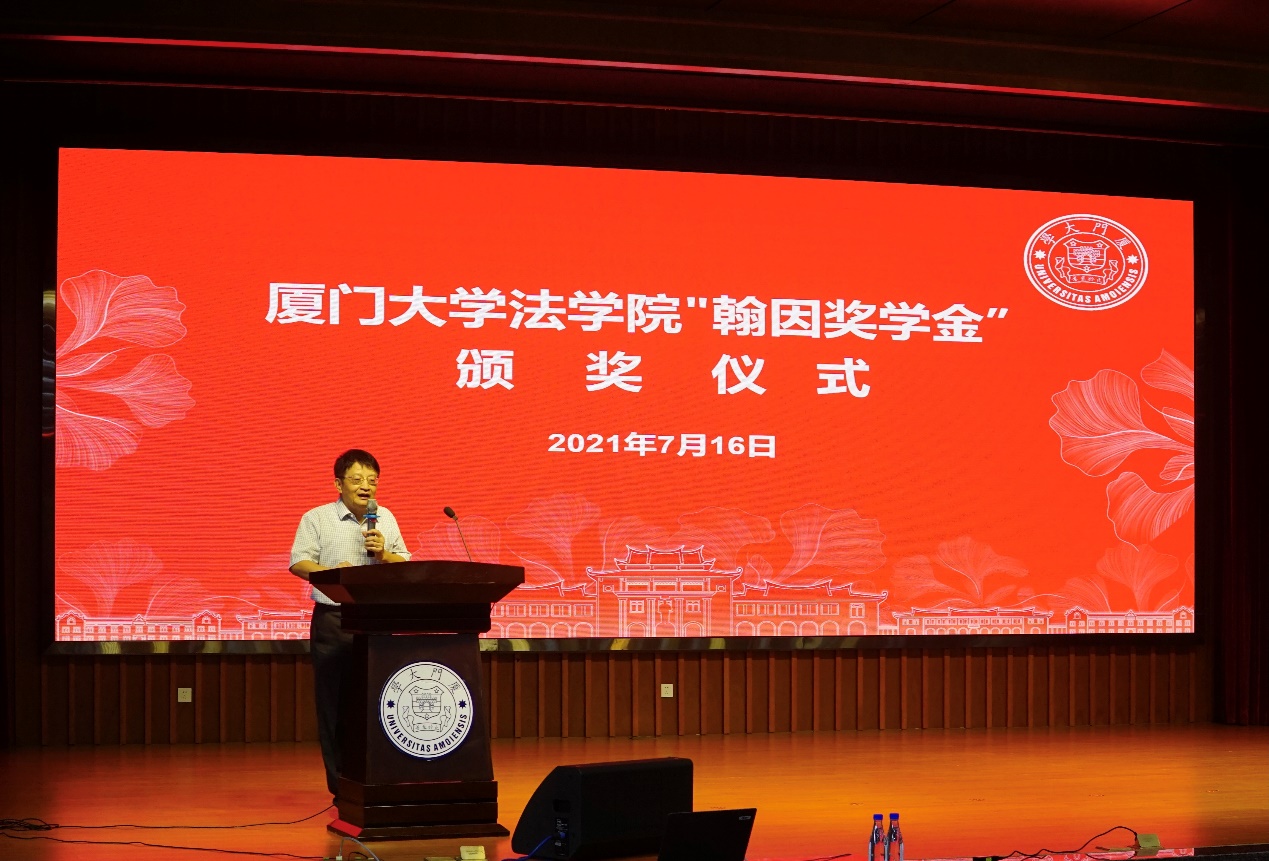 “翰因奖学金”设立者之一陈安教授委托曾华群教授到场致辞。曾华群教授首先回顾了“翰因奖学金”的评选过程,介绍了该项奖学金严格的评选条件,要求获奖者德智体美劳全面发展。曾教授还指出了本次获奖者表现出的走向国际化的特点,例如入选海牙国际法高等研究院项目、入选联合国国际法院司法助理项目等。曾华群教授总结pc28开奖结果预测官网刮刮乐与法学院的三个特点:其一,院校发展历史悠久,学校在发展中形成的“爱国、革命、自强、科学”四种精神,为院校参与“人类命运共同体”的建构提供了深厚的精神积淀;其二,有较好的研究基础,包括《国际经济法学刊》、中国国际经济法学会秘书处、厦门国际法高等研究院、辩论队等多样化平台,为学子提供丰富的锻炼机会;其三,厦大法学院严谨扎实的学风,使学子得以充分利用厦大平台,知行合一。他结合习近平总书记“七一”重要讲话精神,表示在座各位学子将在我国国际法治的建设中大有发展空间。最后曾华群代表陈安教授以及国际法学科热烈祝贺本次获奖的四位研究生,表达了对学子们真切的关怀与美好的祝愿。
