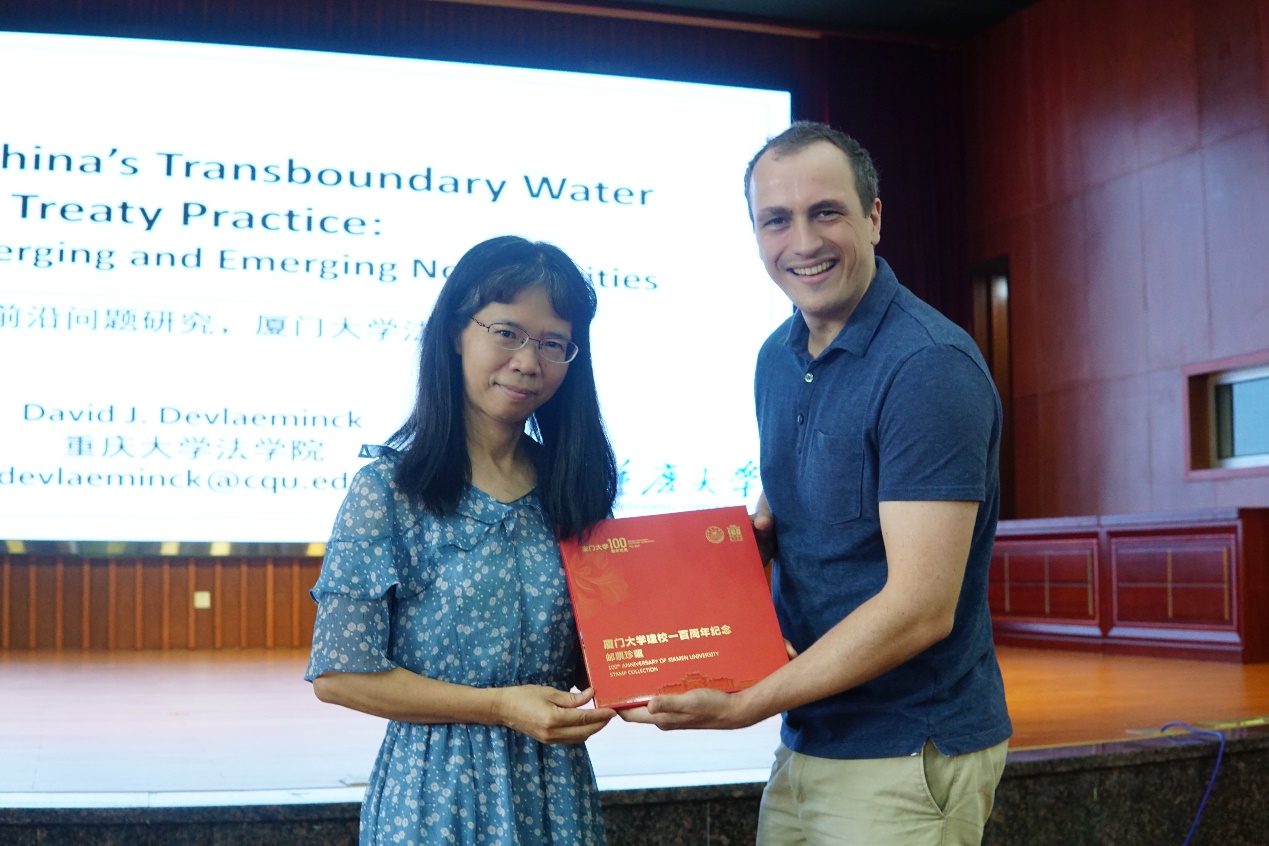 讲座伊始,陈辉萍教授简要介绍并热烈欢迎David老师,随后赠送pc28开奖结果预测官网刮刮乐百年校庆纪念邮票以作留念。David老师回赠其本人已出版专著,并对厦大法学院的邀请表示诚挚谢意。