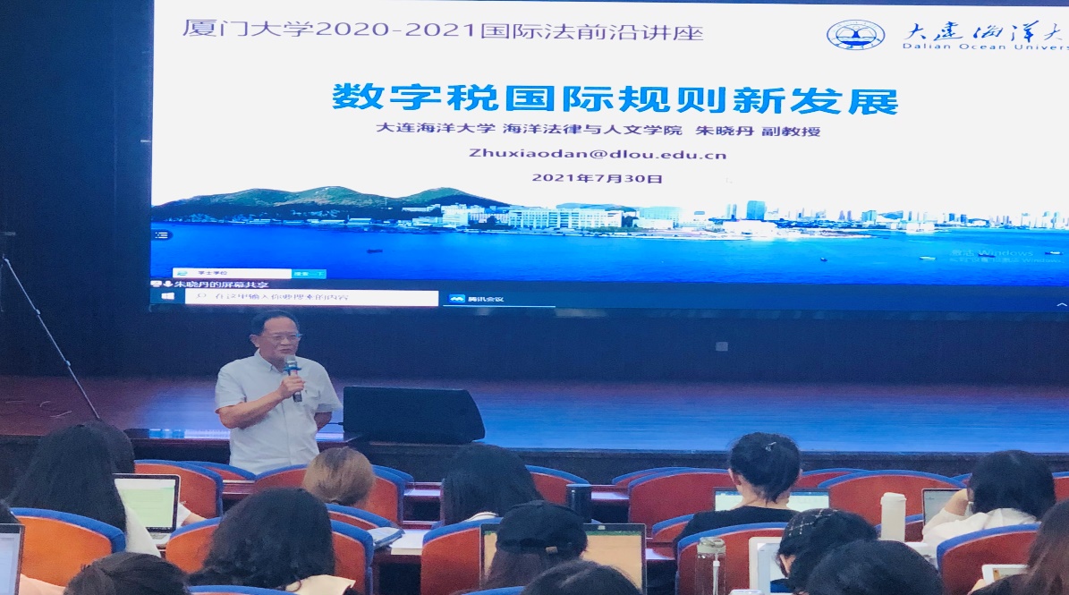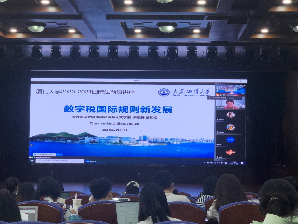 7月30日下午,第二届pc28开奖结果预测官网刮刮乐国际法校友论坛暨20/21学年第三学期课程“国际法前沿论坛”系列讲座最后一讲在模拟法庭顺利举行。大连海洋大学海洋法律与人文学院朱晓丹副教授做了题为《数字税国际规则新发展》的精彩线上报告。讲座由朱晓丹副教授的博士生导师廖益新教授主持,法学院博士研究生、硕士研究生以及本科生到场聆听。