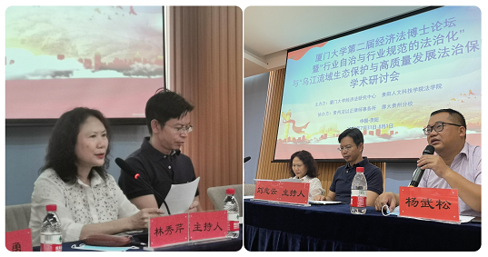 与会人员合影留念后,论坛分两个单元依次进行。第一个单元是“行业自治与行业规范的法治化”,第二个单元是“乌江流域生态保护与高质量发展法治保障”。论坛由浙江财经大学法学院博士研究生导师刘勇教授主持,刘勇教授介绍了发言的顺序与时间等规则,开启了本次论坛的精彩发言。