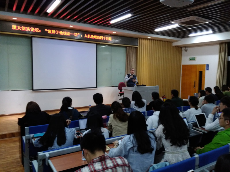 2018年4月19日晚,我院与福建联合信实律师事务所合作举办的厦大信实论坛,非常荣幸地邀请到清华大学梅汝璈法学讲席教授,当代知名法学家冯象先生,于我院B137教室分享了一场题为“惊异于他统治一切——人机伦理的四个问题”的精彩讲座,本次讲座由魏磊杰副教授主持,吴旭阳副教授担当评议人,肖伟教授、郑永宽副教授以及刘炯老师、来自我校多个学院的博士生、硕士生以及本科生以及来自联合信实律师事务所、集美大学法学院、嘉庚学院法律系等诸兄弟院校的老师、学生以及律师们共约上百人共同参与了这场知识盛宴。