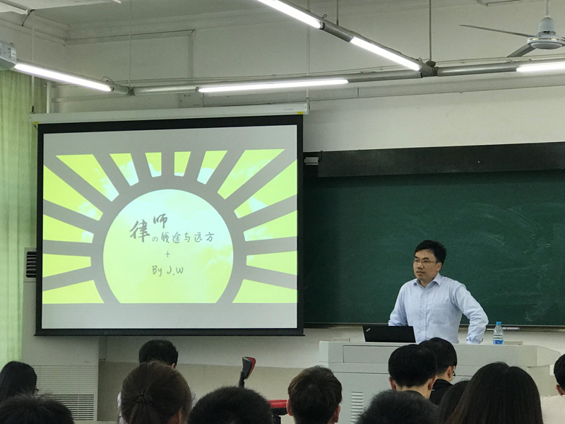 其次,他向同学们简要介绍了通力律所的相关情况,通力会为初级律师安排多种多样的入职培训,训练其专业能力。他强调律师是一个服务行业,除了专业知识,沟通能力、工作态度也同样重要,并且表达了希望为通力律所吸纳更多的人才的意愿。