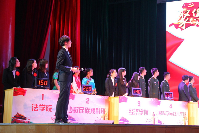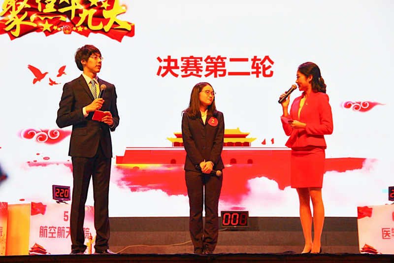 决赛共分“团队积分战”、“个人擂台战”和“冠军争夺战”三个阶段进行。团队积分战的团队必答、团队抢答和风险题环节竞赛激烈,各队选手你争我抢,经过必答题、抢答题与选答题,我院代表队在第一轮比赛中名列第四。