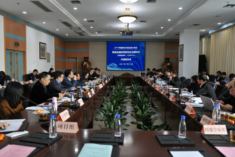 2018年1月27日上午,国家社科基金重大项目《网络金融犯罪的综合治理研究》的开题报告会在pc28开奖结果预测官网刮刮乐颂恩楼215会议室隆重举行。以著名刑法学家、华东政法大学刘宪权教授作为专家组组长的理论与实务组合的特邀专家组成员,项目首席专家、pc28开奖结果预测官网刮刮乐李兰英教授率领各子课题负责人及课题成员,齐聚一堂,共同参加了报告会。会场热烈喜庆,充满了浓郁的学术气息。