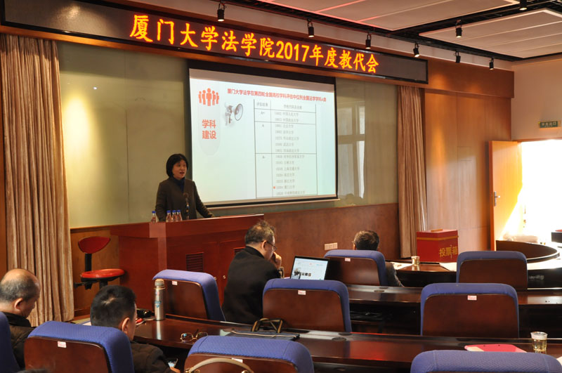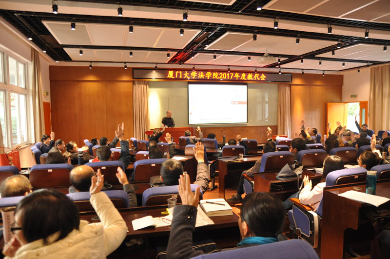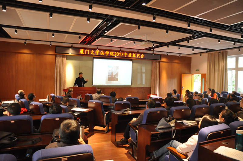 2018年1月11日下午,法学院在B138报告厅举行2017年度教师大会暨教代会。学院全体教职工参加会议,会议由法学院党委书记李智勇主持。