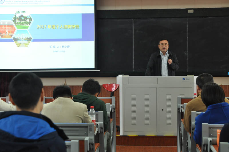 1月19日上午,法学院党政管理人员2017年度考核述职报告会在A302教室举行,法学院领导班子成员、教师代表、全体党政管理人员、实验技术人员、自聘人员参加会议。
