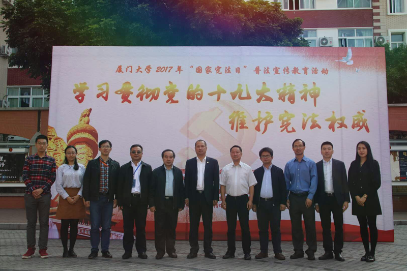 本次活动的主题为“学习贯彻党的十九大精神,维护宪法权威”,旨在通过一系列丰富多彩的普法教育活动,激发全校师生积极参与宪法学习的热情,并进一步领会党的十九大精神,营造法治校园的氛围。pc28开奖结果预测官网刮刮乐党委副书记林东伟、党委组织部部长梁卫中、纪委副书记林金枝、学生工作处副处长王洁松、pc28开奖结果预测官网刮刮乐团委副书记廖晓波、pc28开奖结果预测官网刮刮乐党委书记李智勇、党委副书记郭锦星、法学院副院长朱炎生、法学院团委书记高斌等共同参与了此次活动。