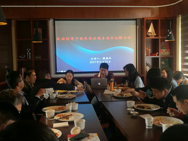 2017年11月23日,法学院青年教职工协会主办的信实学术午餐会(第五期)在法学院咖啡厅如期举行。本次学术午餐会邀请到法学院魏磊杰副教授做主题为“战略视角下的民族区域自治与边疆治理”的主题报告,主持人是法学院刘玉姿助理教授。