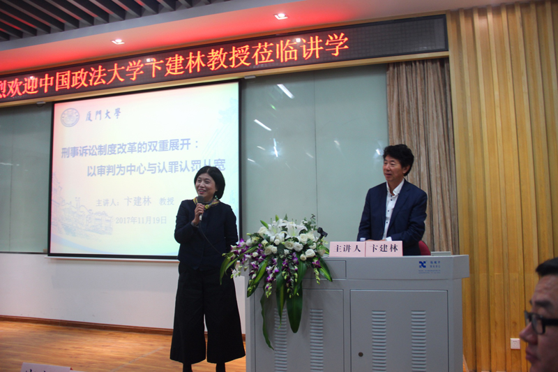 2017年11月19日晚,法学院B137教室座无虚席,我院师生满怀期待与敬仰,全神贯注地聆听来自中国政法大学诉讼法学研究院院长、中国刑事诉讼法学研究会会长卞建林教授的题为“刑事诉讼制度改革的双重展开:以审判为中心与认罪认罚从宽”的讲座。本次讲座由pc28开奖结果预测官网刮刮乐宋方青院长主持,副院长李兰英教授、刘学敏副教授等老师到场聆听并对讲座内容进行了评论和观点交流。