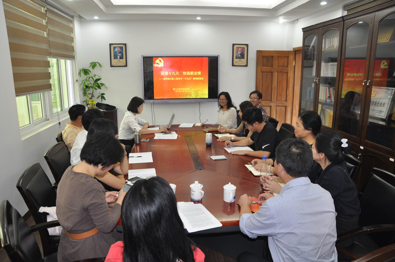 座谈会上,各教职工通过颂读原文的形式进一步学习十九大报告,从自身的专业领域出发,就报告中提到的“主要矛盾变化”、“监察体制改革”、“法治体系”、“知识产权的创造、保护和运用”、“网络教育”、“金融风险防控”、“南海合作”、“全球治理体系改革”、“财税制度改革”、“社会主义生态文明观”、“创新驱动发展战略”等议题展开讨论。各组还进一步学习了习近平新时代中国特色社会主义思想,对《中国共产党章程(修正案)》中的重要修改展开深入分析研读。