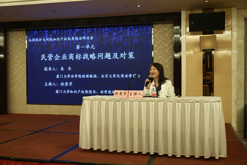 本次研讨会分为四个单元进行。第一单元和第二单元由林秀芹教授主持,我院朱冬助理教授和北京中银律师事务所高级合伙人、厦门品同律师事务所主任罗丽珍律师分别作了题为“民营企业商标战略问题及对策”和“以案说法:企业商业信誉、商品声誉被侵权的法律救济”的主题报告并同与会代表互动交流。林秀芹教授对这两个单元的内容做了精彩的总结,并高度肯定了两位报告人的生动讲演。