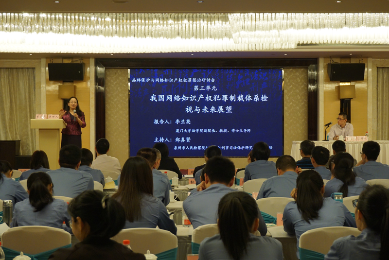 第三单元和第四单元由泉州市人民检察院知识产权刑事司法保护研究中心副主任郑真贤主持并点评,李兰英教授和美亚柏科集团法务部副总经理仲丽华分别作了题为“我国网络知识产权犯罪制裁体系检视与未来展望”和“电子数据司法鉴定及存证技术在知识产权保护中的应用”的报告。在经过一天的头脑风暴,与会代表热情持续高涨,互动环节的提问针锋相对,而报告人也对现场提问作出了专业的回应。