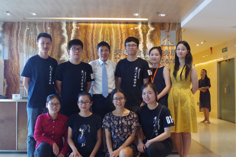 2017年9月12日,我院院属社团法学社部分同学前往福建天衡联合律师事务所,走访我院1997级院友林浩夫。林浩夫律师曾担任法学社副社长,并参与主编我院学生学术类刊物、法学社社刊《法学阶梯》及《法学社简报》,现为福建天衡联合律师事务所合伙人、厦门市劳动争议仲裁委员会仲裁员。