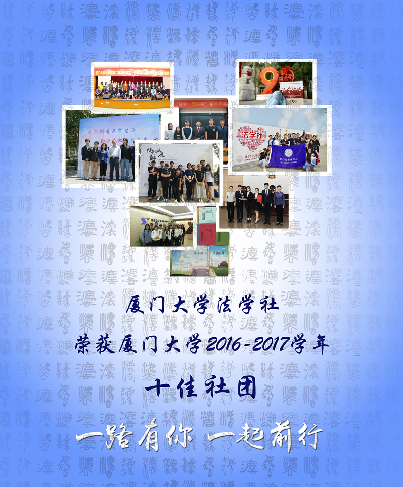 在过去的一年里,在社团专业顾问老师、我院诉讼法学教研室齐树洁教授的指导下,法学社编辑出版我院学生学术类刊物、社刊《法学阶梯》,并且先后成功举办“联合信实杯”模拟法庭辩论赛、“浪潮杯”学术征文大赛、“律师杯”班级辩论赛等大型活动;同时,社团敢于创新,先后主办“法学·开讲啦”学术交流讲座、“知行·软法之治”研习班、法律思维拓展训练营等新型社团品牌活动。