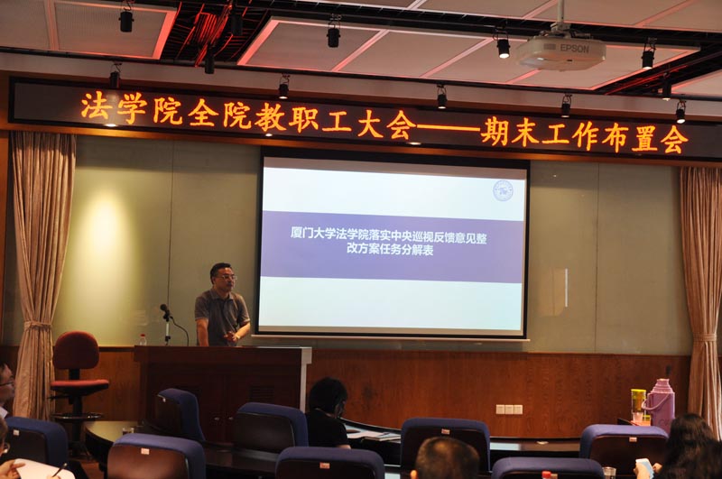 7月20日下午,法学院在B138会议室召开全院教职工大会期末工作布置会,法学院全体教职工参加会议,会议由法学院党委书记李智勇主持。