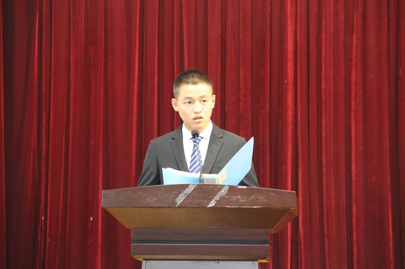 接着,兄弟学院研究生会代表、外文学院研究生会主席余荣睿同学宣读贺信。余同学表示其对法学院过去一年里举办的“仲裁杯”辩论赛、法律文书写作大赛等品牌活动印象深刻,法学院研究生会展示了良好的精神面貌和工作能力。法学院与其他学院共同承办的文体与学术活动大大加深了兄弟学院之间的合作,希望各兄弟学院在今后的工作中进一步通力合作,共同进步。