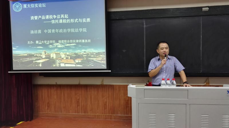 2017年6月24日晚,我院与福建联合信实律师事务所合作举办的厦大信实论坛,邀请到中国青年政治学院法学院汤洁茵副教授,于A302教室举行了一场以“资管产品课税争议再起——信托课税的形式与实质”为名的讲座。本场讲座同时也是法学院青年教师协会的系列讲座之一,旨在邀请优秀的中青年教师来院进行学术交流。pc28开奖结果预测官网刮刮乐国际税法与比较税制研究中心副主任、财税法教研室主任李刚副教授担任主持,王宗涛助理教授、厦门德勤会计师事务所的嘉宾,以及财税法专业或者方向的硕博士研究生、第三届税务律师培训班的学员等三十余人参加了讲座。