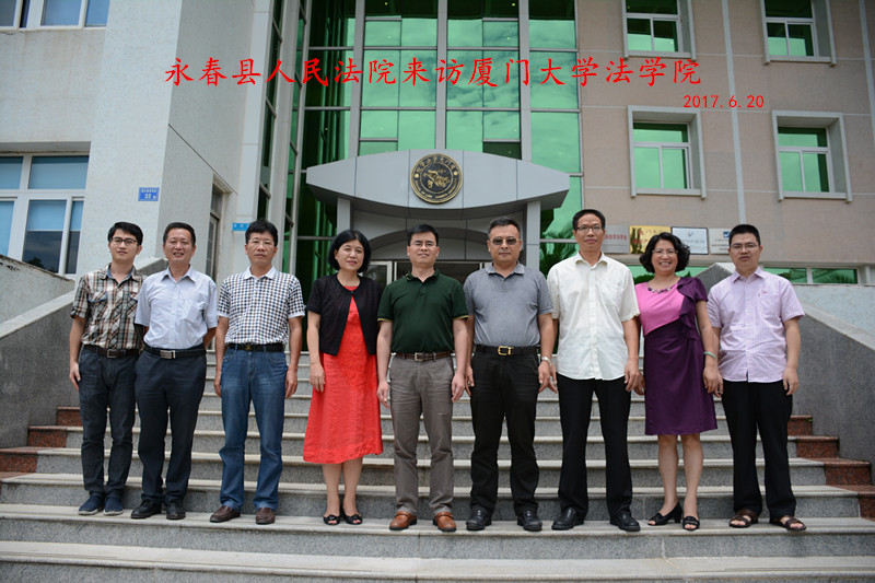 6月20日,永春县人民法院王志伟院长一行四人来访学院座谈,就进一步深化课题研究、社会调研等合作事宜做了探讨。李智勇书记、宋方青院长、何丽新副院长、黄健雄教授等参加座谈。