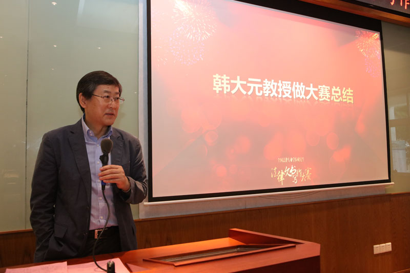 韩大元教授对比赛情况进行了精辟总结,他肯定了赛事的重要意义,并建议教指委教学评价体系将法律文书写作纳入其中,作为评价的重要尺度和标准。他认为法律人承载着民众和这个时代的责任和正义,法律文书不只是一般的文字表达,更是法治信念灵魂、价值立场的媒介和载体,希望法律人通过良善说理的法律文书真正维护社会公平正义,树立法治信仰,让公民未来生活有期待,对中国法治有信心。