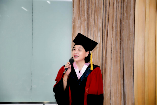 毕业典礼在嘹亮庄严的国歌声中开始。法学院院长宋方青教授上台致辞,她代表法学院向全体毕业生致以最诚挚的祝贺,表达了对同学们的无限期许。她指出大学毕业,是人生新的起点,是走向社会的重要标志,并对全体毕业生表达三点期许:第一,把奋斗当做青春的主题曲。青年人是最富有朝气和梦想的,希望全体毕业生能够坚定理想信念,矢志艰苦奋斗,秉持“自强不息,止于至善”的校训,在奋斗的过程中不断学习、不断进步,实现自身价值。同时,自觉承担起历史使命和社会责任,为民族的振兴、社会的发展、特别是中国的法治建设作出自己应尽的贡献;第二,坚守法治信仰,不忘法律人的责任与良知。当面对多元价值理念,面对复杂的现实与理想和法治信仰冲突时,希望大家能够心境光明,行事磊落,勇于追求自己的法治理想,坚守自己的法治信仰,遵守法律职业伦理,维护社会的公平正义。要时刻铭记法律人的理想与追求,与高尚同行,做一个有德之人;第三,希望毕业生能时时刻刻记得母校,记得法学院。请记住无论同学们走得多远,学院都是大家的精神家园,老师也是大家最忠实、值得信赖的朋友,母院乐于分享大家的成功,也会在失意时助同学们一臂之力。